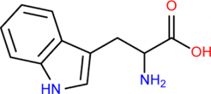 Det sker fordi de fraspalter den amin-gruppe NH2 fra aminosyren, som ved fraspaltning bliver til NH3 - altså ammoniak. Aminosyren tryptofan ses her med amingruppen NH2 med blåt.